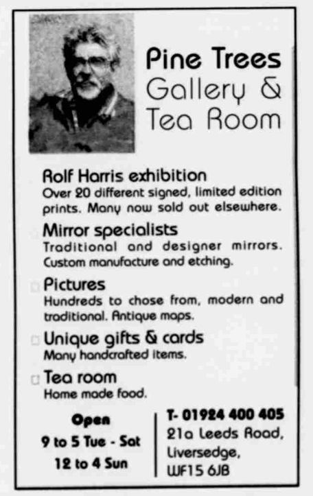 Advertisement for a Rolf Harris art exhibition at Leeds, published in the Dewsbury Reporter, December 10, 2004, page XI.