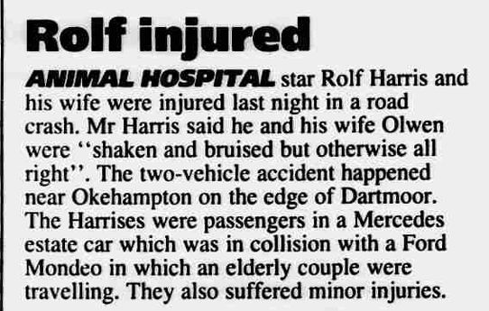 Rolf Harris hurt in car accident published in The EVENING Gazette (TOWN AND COUNTRY), May 12, 1998, page 2. ***$